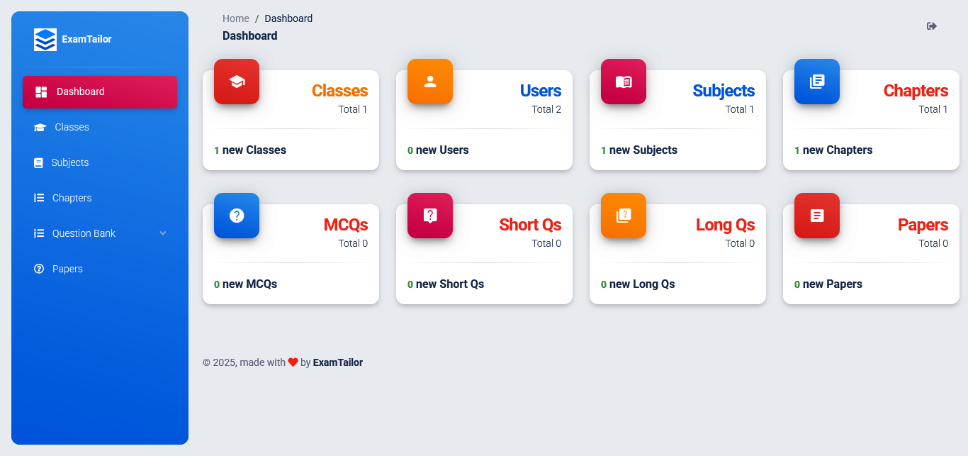Our Exam Paper Generator Software is a powerful and user-friendly tool designed to simplify exam creation for teachers. Educators has to input their question data based on class, subject, and chapter, organizing their content efficiently. Once the data is stored, teachers can generate customized exam papers instantly with just a click. The software ensures accuracy, flexibility, and time efficiency, allowing educators to focus on teaching while eliminating the hassle of manual paper preparation. This solution is the perfect companion for modern educators looking for a fast and effective way to create exams. Perfect Solution for :-